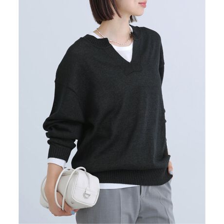 クルーネックに切れ込みを入れたスキッパー型で、程よい抜け感をプラス。
