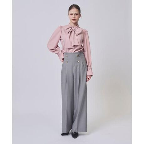 【Point】・計算されたウエストタック&ダーツが、腰回りをすっきりと美しく見せるハイウエストワイドパンツ。・バックウエストは一部ゴム仕様になっており、長時間の着用でもストレスフリーな履き心地を実現。・裾が広がり過ぎないストレートワイドシルエットで、細見え効果とセンタープレスによる脚長効果を両立します。・サイドファスナー仕様で着脱しやすく、忙しい朝にもさっと穿けるのも嬉しいポイント。