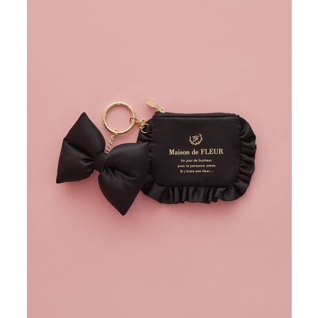 マットなサテン生地にゴールドのロゴプリントが映える、ポーチチャーム。