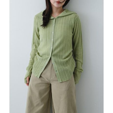表情豊かなマルチリブ編みが目を惹く、フーディータイプのニットカーディガンです。清涼感のあるシャリっとした質感の糸を使用しているため、季節の変わり目にも重宝する軽やかな肌触りが魅力。最大のポイントは、ウエスト部分に施されたタックデザイン。きゅっと絞られたラインが、リラックス感のあるフーディーに女性らしいメリハリを与え、一枚でスタイルアップを叶えてくれます。前を閉じてプルオーバーのように着こなすのはもちろん、羽織りとしても装いを品よくクラスアップさせてくれる実力派の一着です。