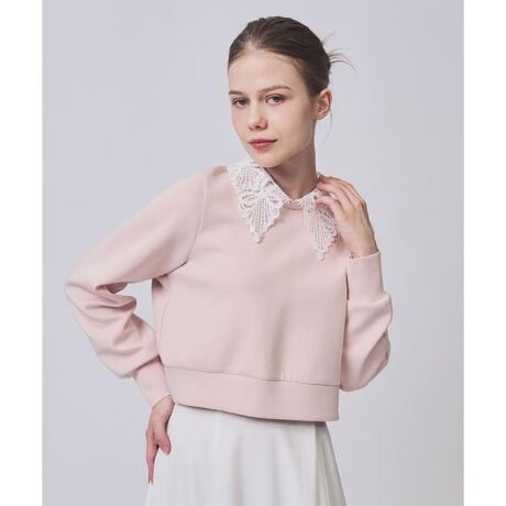 【1枚で着映える、主役級のレース襟付きカットソートップス】【Point】・取り外し可能な配色レース襟がかわいらしいカットソートップスです。・伸縮性のあるカットソー素材なので、きれいめな印象でありながら気負わず取り入れられる着心地の良さも魅力◎・1枚で華やかな存在感があり、デイリーからお出かけまで幅広く活躍する、きちんとかわいい万能トップスです。・バックスタイルにパールボタンを使用し、クラシックなムードをプラス。・コンパクトな丈感でボトムスを問わず、合わせやすい1枚です。・ご自宅でお手入れ可能な、イージーケアなところもうれしいポイント♪ケア方法:手洗い可能透け感:なし裏地:なし伸縮性:あり光沢感:なし生地の厚さ:中肉