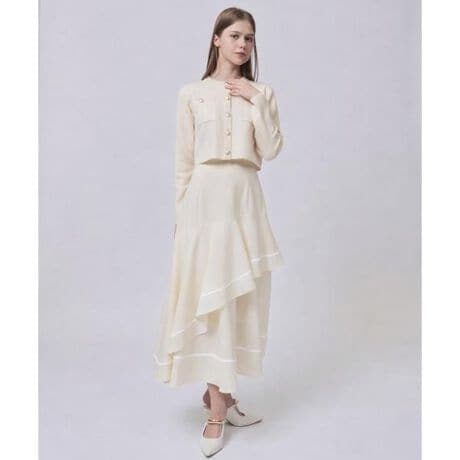 【配色アクセントが映える、女性らしさを引き立てるヘムラインフレアスカート】【Point】・女性らしいヘムラインとフレアシルエットが大人レディに仕立てるフレアスカート。・裾に向かって生地をたっぷり使用したフレアシルエットが、歩くたびにふんわりと広がり、女性らしいシルエットを演出します。・存在感のある配色テープがコーディネートにアクセントをプラス。・バックウエストはレースアップ仕様になっており、サイズ調節できるところも嬉しいポイント◎・オンでもオフでも活躍するデザインなので、シンプルなトップスと合わせるだけで洗練された印象に。ケア方法:手洗い可能透け感:なし裏地:あり伸縮性:あり光沢感:なし生地の厚さ:中肉