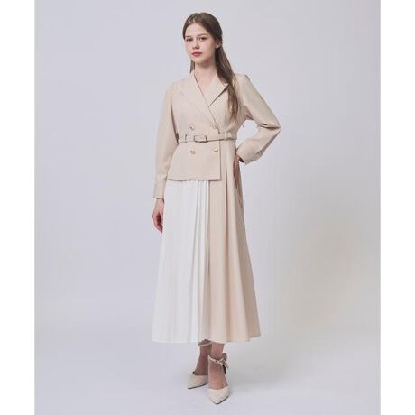 【軽やかなプリーツの揺れ感が印象的な、クラシカルなトレンチワンピース】【Point】・トレンチディテールを取り入れた、きちんと感と女性らしさを兼ね備えたワンピース。・ダブルボタンと共布ベルトがウエスト位置を高く見せ、スタイルアップを叶えてくれる一枚です。・スカート部分にはプリーツを施し、動くたびに軽やかで上品な揺れ感を演出。・プリーツデザインが奥行きを生み、シンプルながらも存在感のある仕上がりに。・リッチ感のある印象を作るゴールドボタンもポイントです。・一枚でコーディネートが完成するため、通勤やお出かけ、きちんと感が求められるシーンにもおすすめです。ケア方法:ドライクリーニング透け感:なし裏地:あり伸縮性:なし光沢感:なし生地の厚さ:中肉