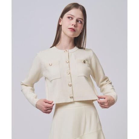 【金ボタンがアクセントになった、トップス見えするクルーネックカーディガン】【Point】・金ボタンが上品なアクセントになった、大人フェミニンなニットカーディガン。・クルーネックデザインで、顔まわりをすっきりと見せ、きちんと感のある印象に仕上げました。・程よく厚みのあるニット素材で、今の時期から使いやすく、身体のラインを拾いにくいのが魅力。きれいなシルエットをキープします。・コンパクトな丈感がスカートにもパンツにも合わせやすく、バランス良く着用可能。・前を閉じてトップス風に、開けて羽織としても活躍します。・デイリーから通勤、お出かけまで幅広いシーンで使える、上品フェミニンな一枚です。ケア方法:手洗い可能透け感:なし裏地:なし伸縮性:あり光沢感:なし生地の厚さ:中肉