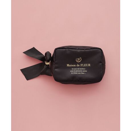 ファスナー引手には本体と同色のサテンリボンをあしらい、