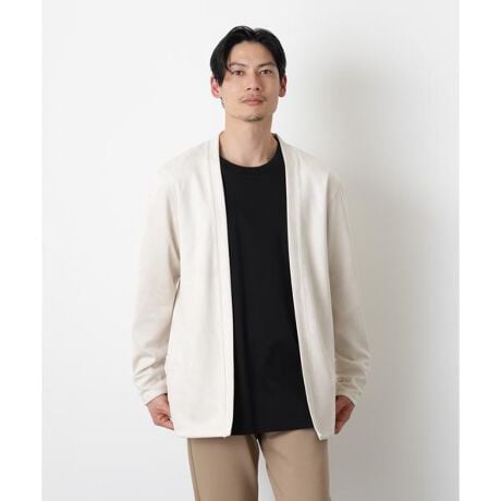 「フェイクスエード」シリーズのトッパーカーディガン。伸縮性だけでなく、心地よいタッチ感を演出した生地を採用。軽い羽織としておすすめのアイテムです。