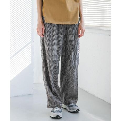 ストレートシルエットながらもゆるさを取り入れ、ウエストはオールゴムのドローストリング紐付きで自信のサイズに合った楽ちんな穿き心地が実現。