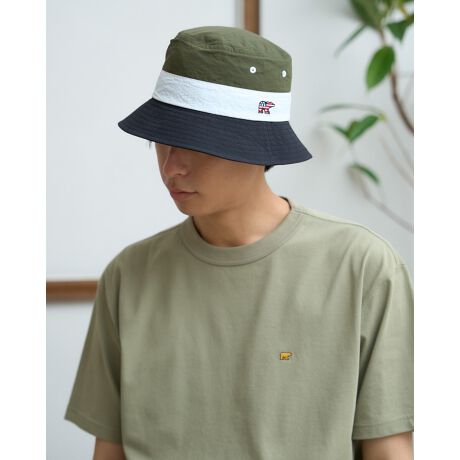[型番:314U3004]星条旗をモチーフにしたベア刺繍入りのバケットハットです。水や汚れに強いナイロン素材を使用しているので、アウトドアシーンで大活躍のアイテムです。