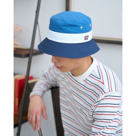 [型番:314U3004]星条旗をモチーフにしたベア刺繍入りのバケットハットです。水や汚れに強いナイロン素材を使用しているので、アウトドアシーンで大活躍のアイテムです。