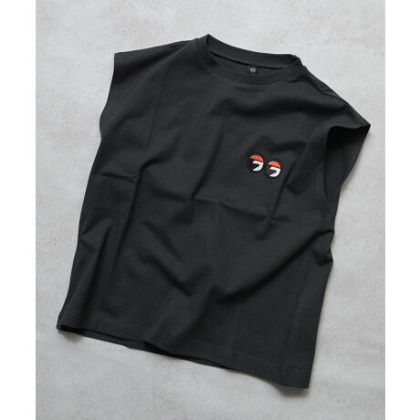 胸元のちいさな「オメメ」刺繍がワンポイントのタンクトップ。
