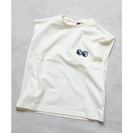 胸元のちいさな「オメメ」刺繍がワンポイントのタンクトップ。
