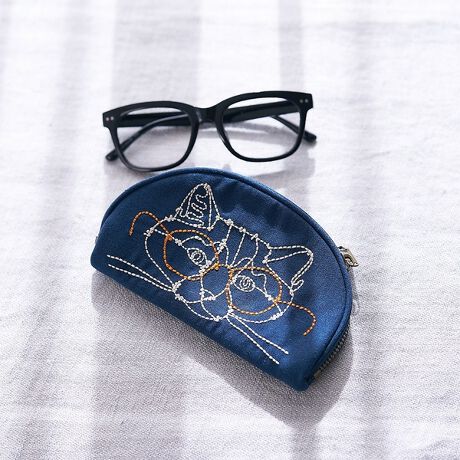 ワイヤーアート作家+HAyUの世界観を刺繍で表現したポーチ。