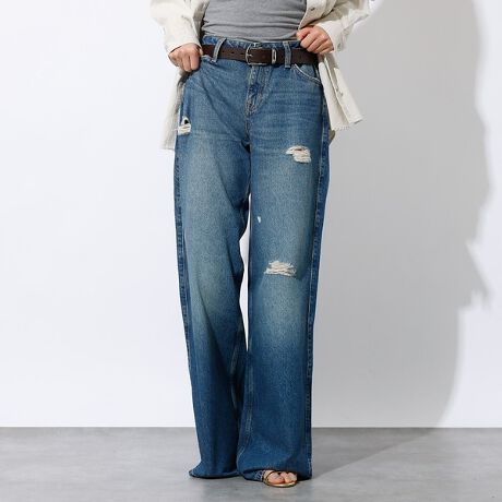 GUESS JEANSのG11ワイドレッグジーンズは、時代を超えたデニムスタイルと現代的な気楽さを融合しています。