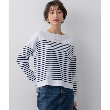 マリンウェアを得意とするファクトリーブランドならではの、上質な素材を使用しています。ふっくらとした適度な厚みと、なめらかで柔らかな肌触りが特徴です。体のラインを拾いすぎず、一枚でも安心して着用いただけるしっかりとした生地感で、快適な着心地を叶えます。