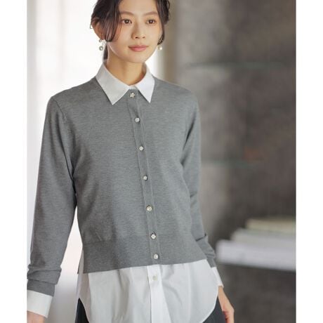 ■デザイン・小さな襟とコンパクトな着丈がシックでモダンなカーディガン。・首や肩が美しく見える絶妙なサイズ感にこだわりました。・様々なデザインのビジューボタンをアソートすることで、シンプルなデザインのスパイスに。・脇のスリットが抜け感と腰回りを自然にカバーしてくれるのも嬉しいポイント。・レイヤードアイテムとの相性が良く、特にフリルシャツコンビインナーとの合わせはおすすめです。・ボタンを全て留めてプルオーバーのように着るのもおすすめ。・適度に生地の厚さがあるのでダルっとせず好バランスがつくれ、コーディネート次第で様々な表情をみせてくれます。