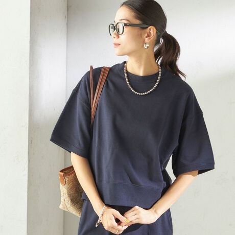 カジュアルすぎない生地感でスタイリッシュな雰囲気を生み出すスウェット
