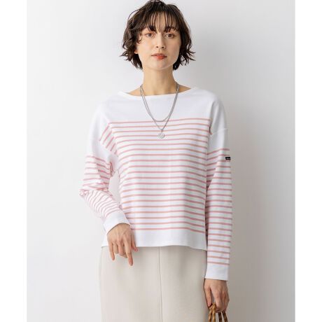 フランスの老舗ブランド『Armor-lux(アルモリュクス)』の素材を使用した、洗練された印象のボーダーカットソーです。23区オリジナルの細めのパネルボーダー柄が、顔周りをすっきりと見せ、カジュアルな中にも女性らしい上品さを演出します。ボトムスを選ばない絶妙なクロップド丈に仕上げており、パンツスタイルですっきりとまとめるのはもちろん、ボリュームのあるスカートと合わせてもバランス良く着こなしていただけます。休日のリラックススタイルから、きれいめなボトムスと合わせたお出かけシーンまで、幅広く活躍する一枚です。カラーは、フェミニンなピンク(#112)、鮮やかなアップルグリーン(#162)、清涼感のあるブルー(#172)、ベーシックで着回しやすいネイビー(#175)の4色展開です。