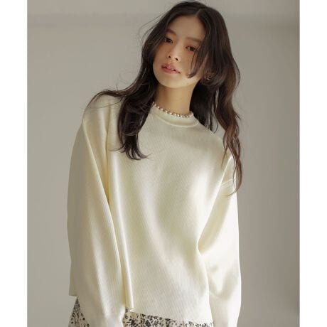 カジュアルシルエット×上品なパール釦が新しいデザインニット