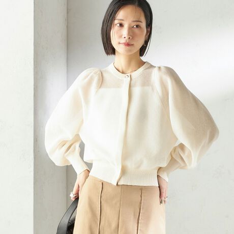 マルイウェブチャネル   /   シップス   /   トップス   /   カーディガン   /   《予約》〈手洗い可能〉メランジ シアー パフ スリーブ カーディガン