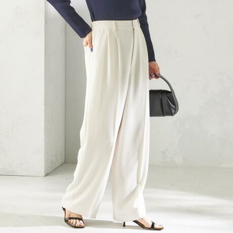 落ち感のある素材を使用しているため、柔らかなシルエットで女性らしく着用いただける一本です。