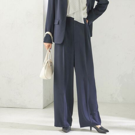 落ち感のある素材を使用しているため、柔らかなシルエットで女性らしく着用いただける一本です。