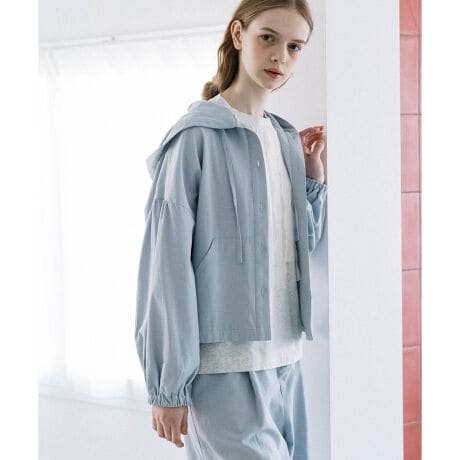 甘撚りのコットンサージで仕立てたフーディブルゾン。肩を落とし身巾はゆったりとしたサイズ感でありながら、ショート丈なのでバランスよく着用いただけます。ボリューム感のある袖は袖口ゴムでまくりやすくしました。ボタンを開けて羽織るとこなれた雰囲気に。