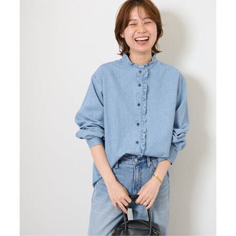 《WEB限定追加予約4》スタンドネックデニムフリルブラウス