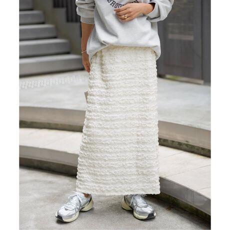 ◆表面のポコポコとした立体感が印象的なIラインスカート