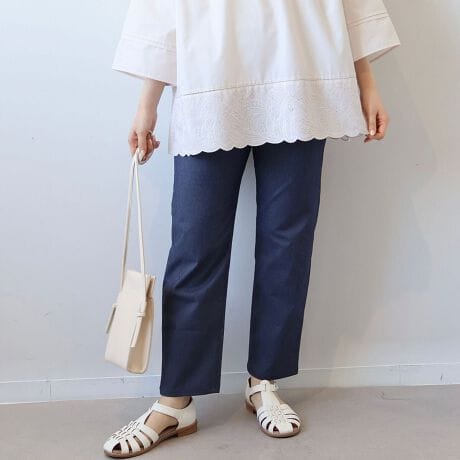足首がのぞくカットレングス丈が、コーディネートに軽やかな抜け感をプラスし、すっきりとした印象に見せてくれます。