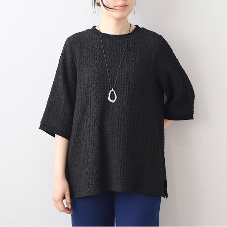 ポコポコとした立体的な表面感が魅力の、表情豊かなカットソー素材を使用。