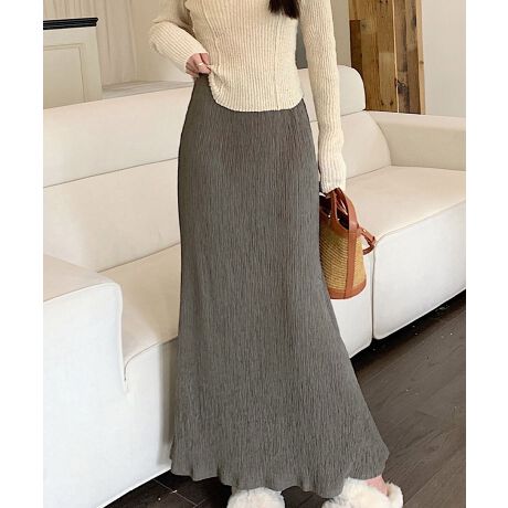 シワ加工を施した、軽やかな素材のロング丈スカート。