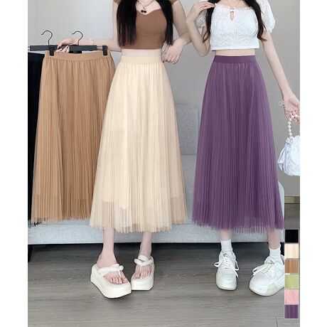 軽やかなチュール素材を使用した、プリーツデザインのロングスカート。