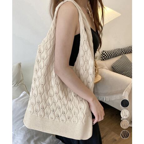立体感のある編み柄とやわらかな風合いが上品な高級感を演出し、軽量で持ちやすく、コーデに自然になじむ。