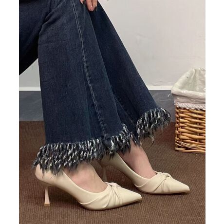 ツイストデザインが足元に上品なアクセントを添える、ポインテッドトゥのヒールパンプス。