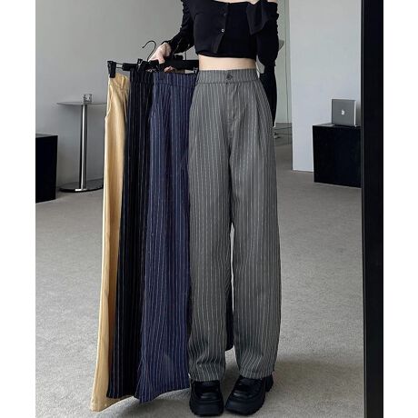 落ち感のある素材と縦ラインでスタイルアップ見えするハイウエストストレートスラックス。