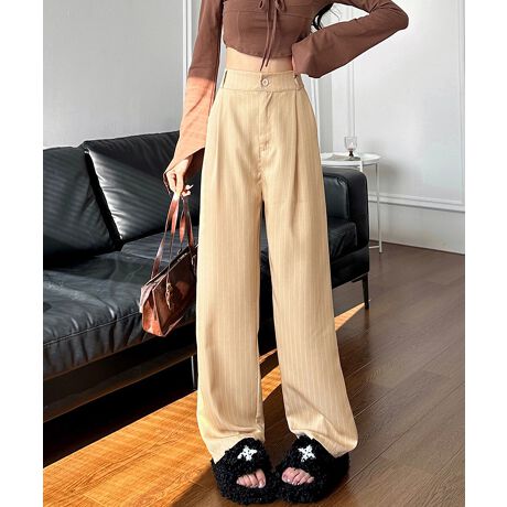 ストライプワイドパンツ春夏秋ロングパンツ