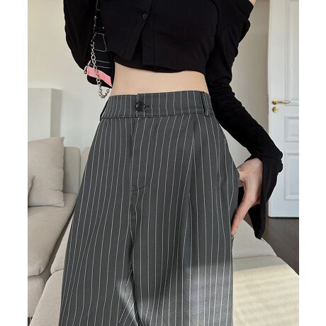 落ち感のある素材と縦ラインでスタイルアップ見えするハイウエストストレートスラックス。