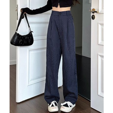 ストライプワイドパンツ春夏秋ロングパンツ