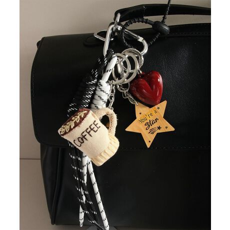 存在感のあるモチーフとコードデザインを組み合わせた、トレンド感あふれるキーホルダー。