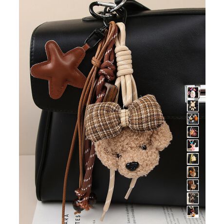 ぬいぐるみの愛らしさとヴィンテージ風デザインが融合した、プレゼントにも最適なバッグチャーム。