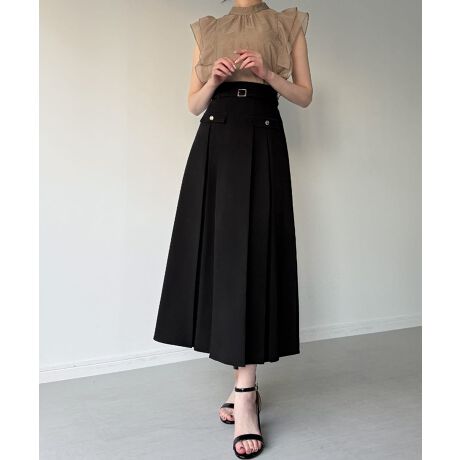 ベルト付きボックスプリーツミディスカート