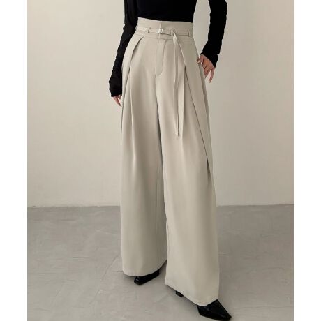 Meiru 細ベルトハイウエストタックワイドパンツ