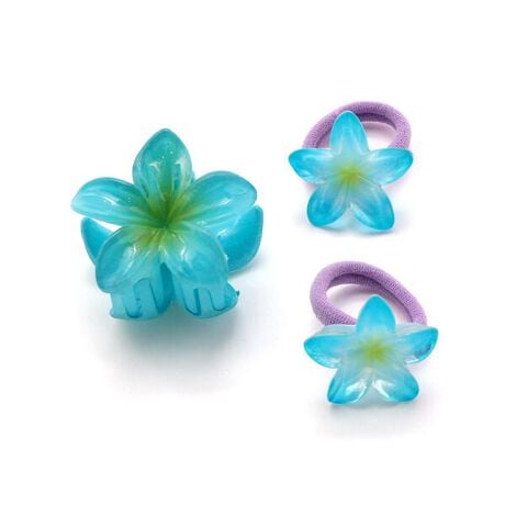 南国を思わせるハイビスカスモチーフが目を引く、爽やかな雰囲気のヘアアクセサリーセットです。