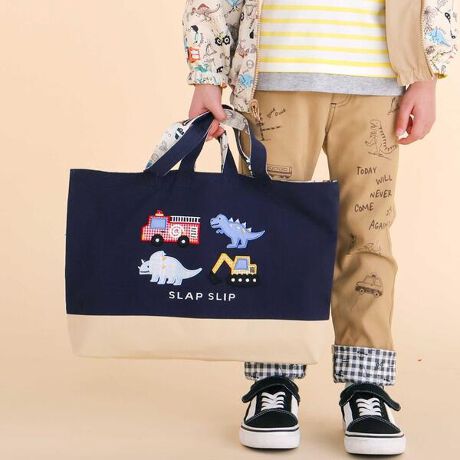 フロントには恐竜とはたらくくるまのパッチ刺しゅうを大胆に配置し、思わず触りたくなる立体感のある仕上がりに。