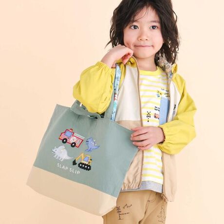 フロントには恐竜とはたらくくるまのパッチ刺しゅうを大胆に配置し、思わず触りたくなる立体感のある仕上がりに。