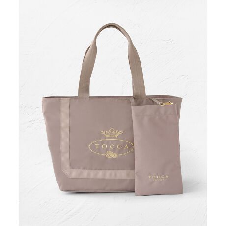 口元に防水タイプのファスナーを付けたA4サイズのレイントートバッグ。附属のポーチはスマホやペットボトルはもちろん、塗れた傘をさっと入れるのに便利。ストラップでハンドルに取り付けも可能です。フロントにはリュクスなホールマーク刺繍やグログランリボンディテールをアクセントであしらって綺麗見えするデザイン。
