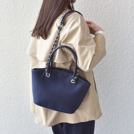 チェーンが大人らしさを引き立てるキャンバスバッグ。