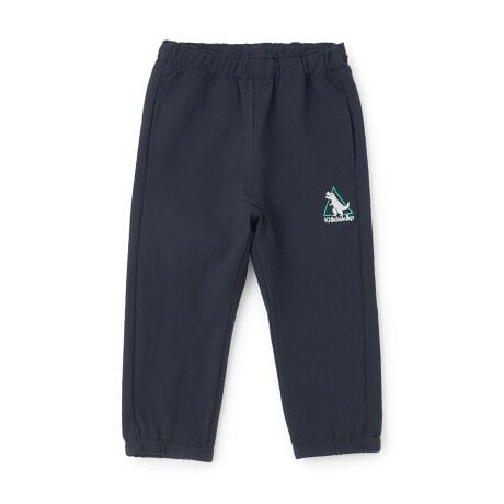 左前にスタイリッシュな恐竜マークを刺しゅうしたロング丈のジョガーパンツです。