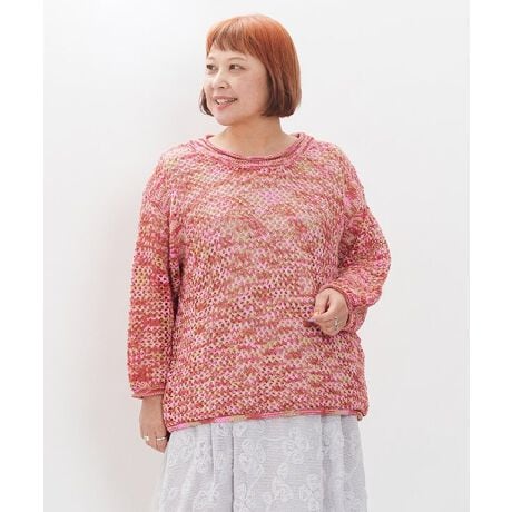 グラデーションのチュールヤーンを使用し、表情豊かなミックス柄のメッシュプルオーバーを作りました。