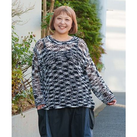 グラデーションのチュールヤーンを使用し、表情豊かなミックス柄のメッシュプルオーバーを作りました。
